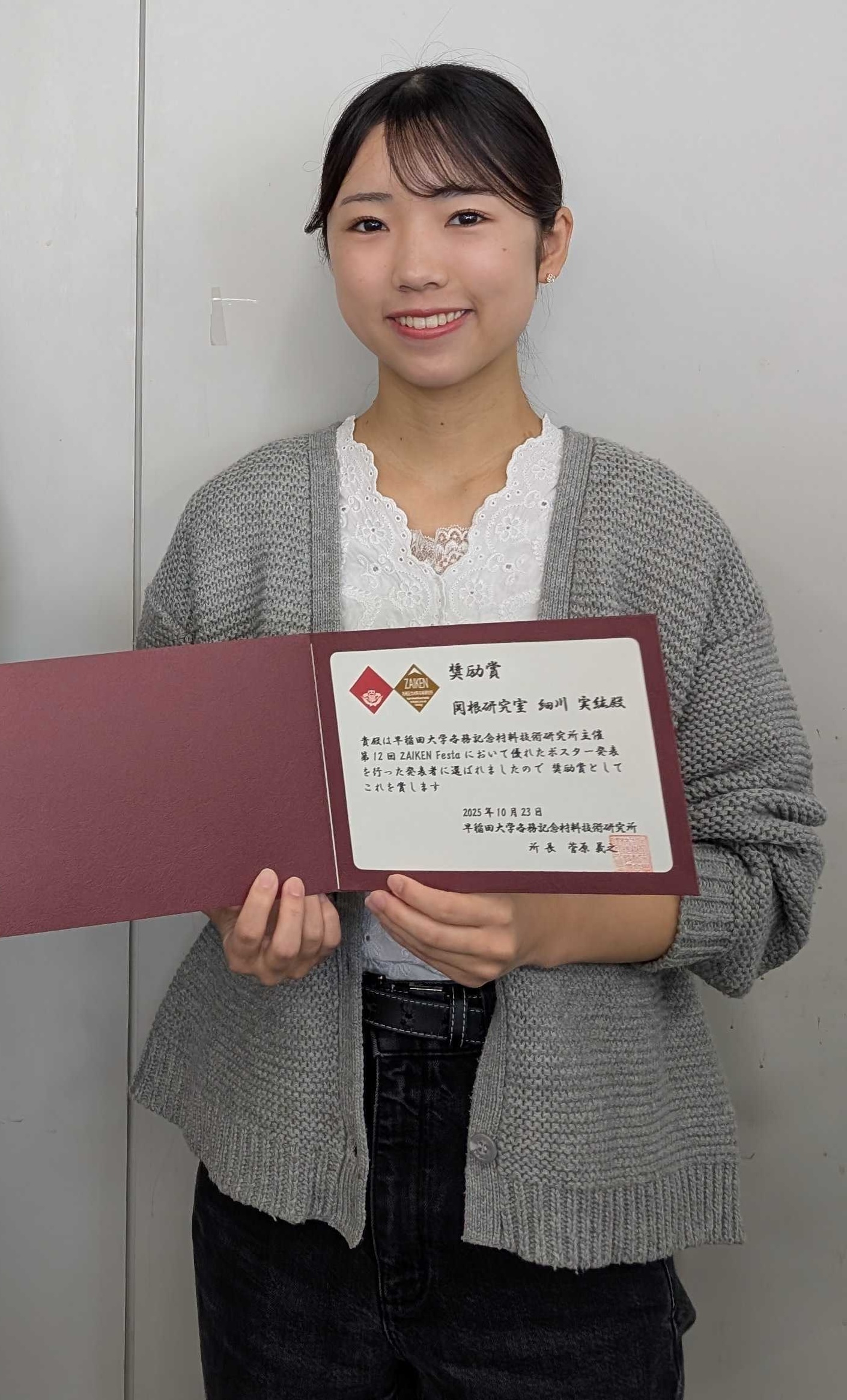 2025/10/30 M1の細川さんが、早大で開催されたZAIKEN Festaにて奨励賞に選ばれました。