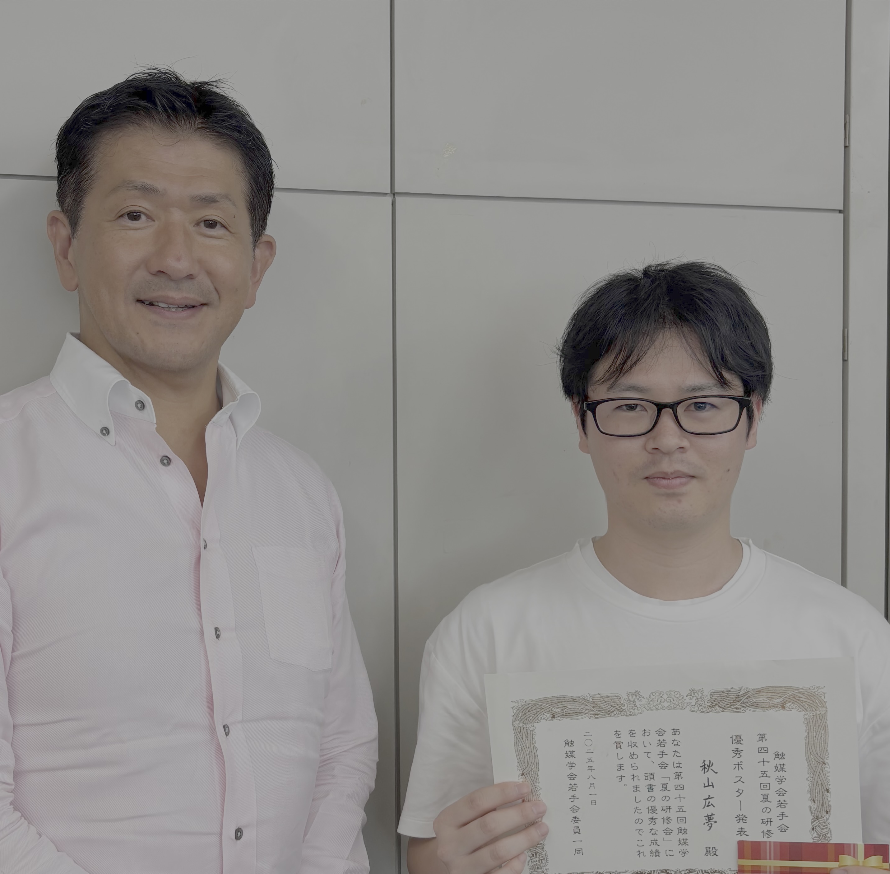 2025/8/1 D1秋山くんが、第45回触媒学会夏の研修会にて優秀ポスター発表賞を受賞しました。